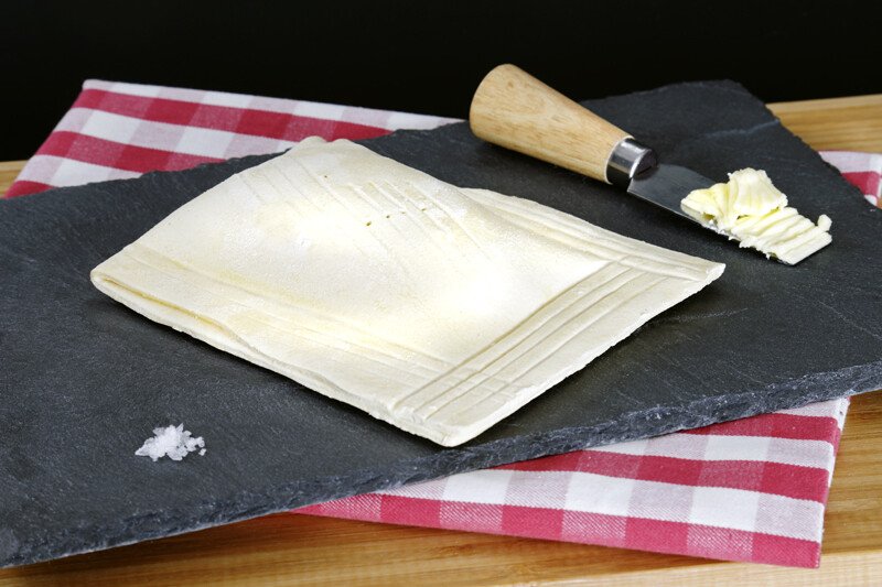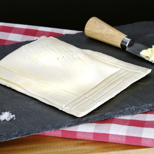 Notre pâte feuilletée, confectionnée à partir de farine de blé de qualité, et d'eau, est réalisée selon notre savoir-faire 100 % lorrain pour obtenir une texture croustillante et dorée à souhait.